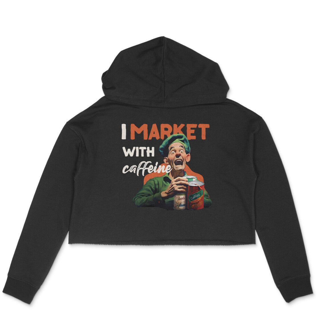 So, for you, we've brewed something special: The "I Market with Caffeine" Crop Hoodie!