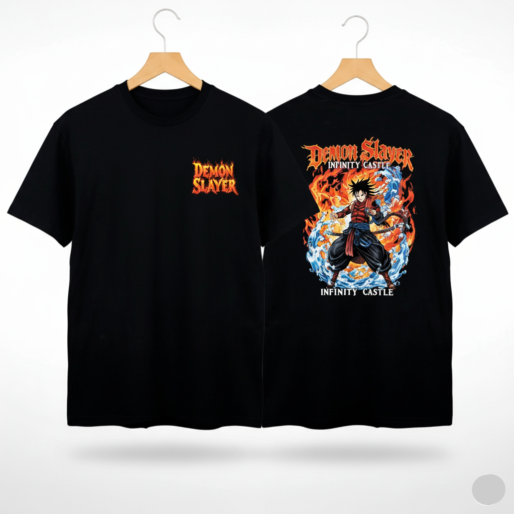 Embrace the epic world of Demon Slayer with this Infinity Castle T-shirt. Featuring iconic scenes and characters from the thrilling Infinity Castle arc, this tee is designed for anime fans who want comfort and style in one.