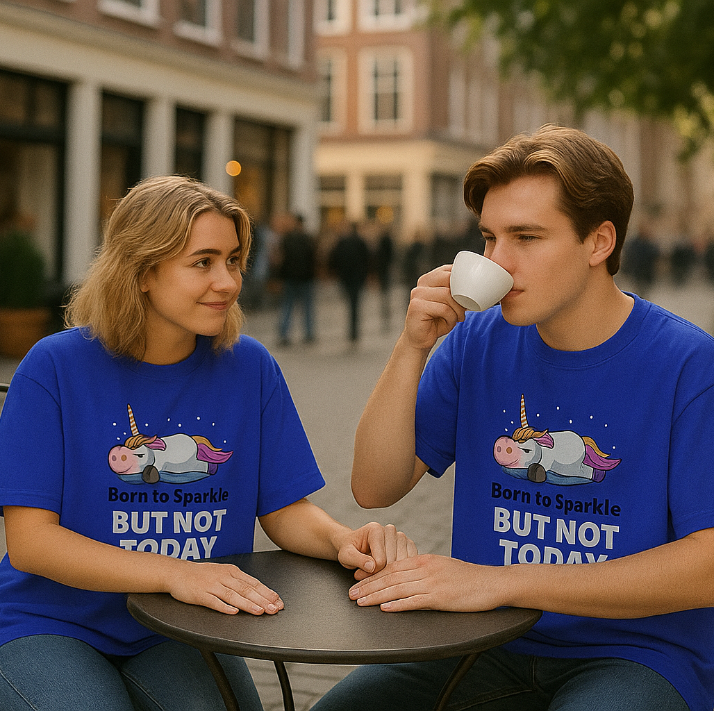 🦄 Sleeping Unicorn Print: Cute and funny “Born to sparkle but not today” design — made for your lazy-day vibe.
