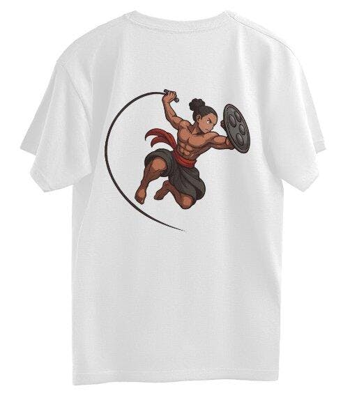 Featuring a quirky “cute cat warrior” graphic inspired by the legendary martial art of Kalaripayattu (Kerala’s own ancient combat style), the design blends fun, power, and tradition, making it a must-have for youth fashion, streetwear, unisex tee, and graphic t-shirt lovers in Kerala and beyond.