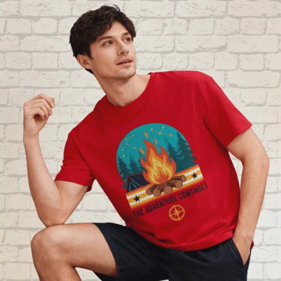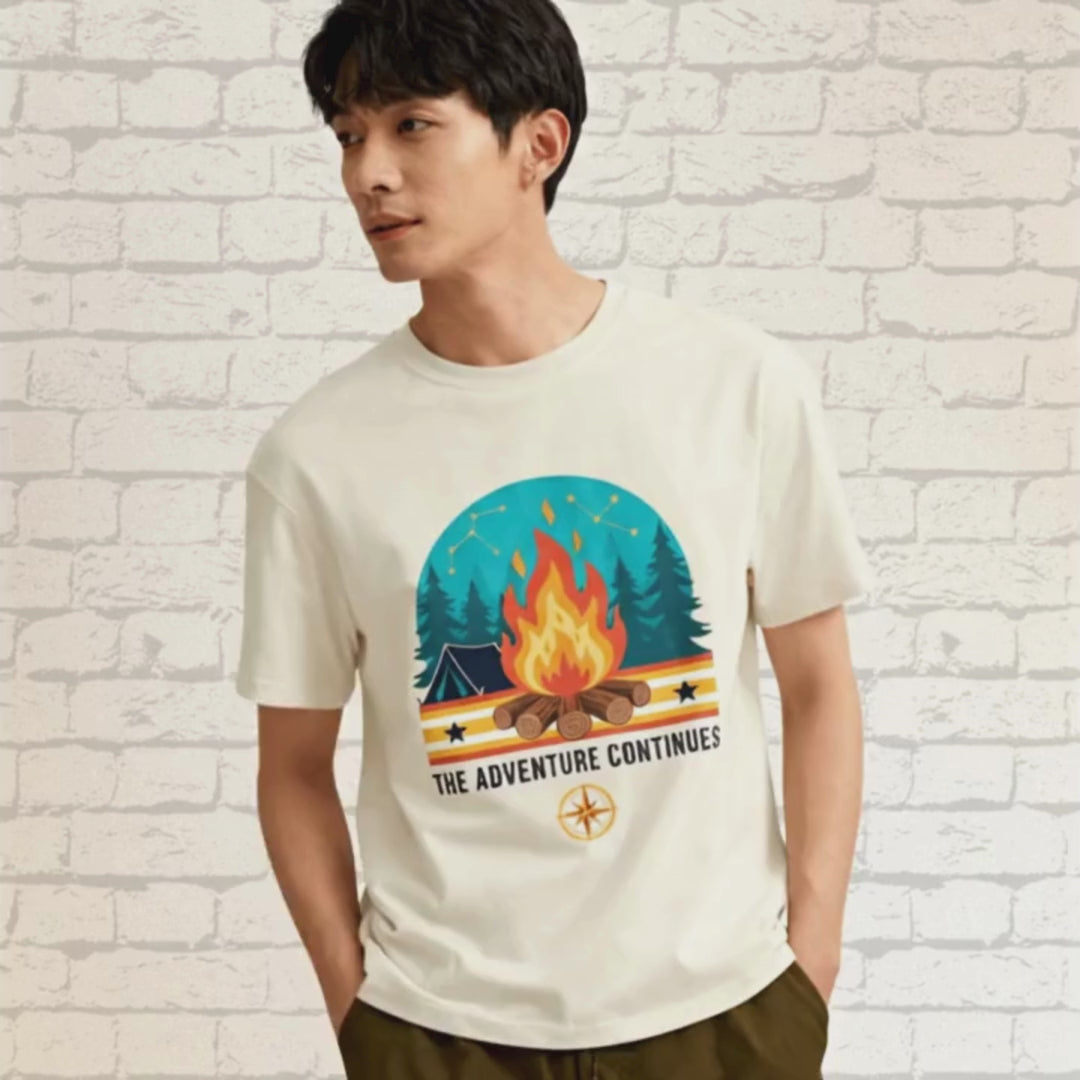- Unique campfire & travel-inspired graphic: “The Adventure Continues”