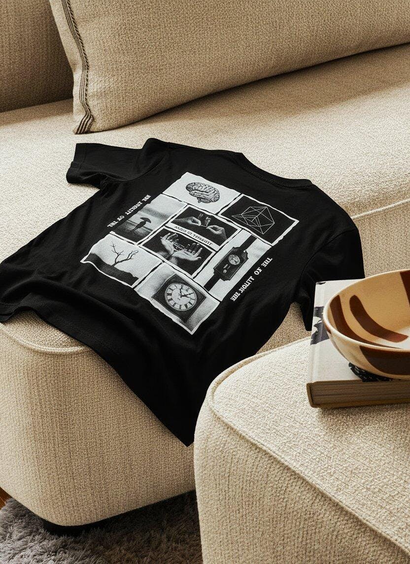Dive into bold minimalism with the Unleavables oversized t-shirt, featuring a unique blend of graphic storytelling and modern streetwear. The back showcases a striking abstract panel artwork with thought-provoking monochrome visuals, while the front carries the powerful “See The Void” chest print for a touch of quiet rebellion.